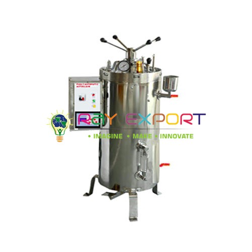 Triple divider twofold chamber Autoclave. The inward chamber, center chamber and external divider made of stainless steel, ring made of stainless steel or gentle steel. The top is made of stainless steel fixed by spiral arms through a controlling wheel made of chromed mellow steel. The instrument is completely sealed. Furnished with weight bandage, security valve, twofold wellbeing valve, steam discharge valve, elastic gasket, internal holder, S.S pail, and mellow steel legs for Autoclave. The Autoclave can hold the in the middle of 5psi to 20 psi.