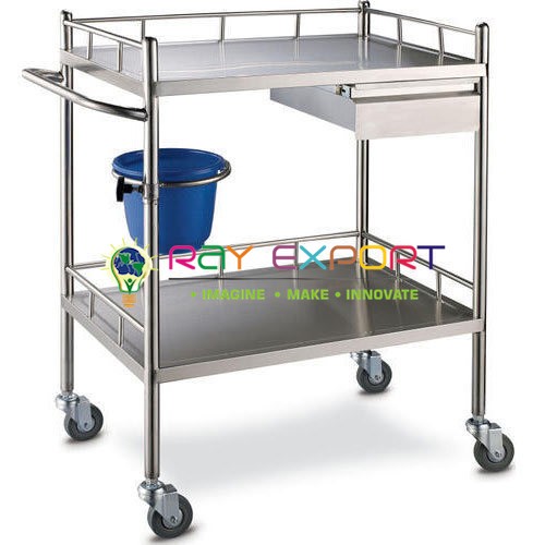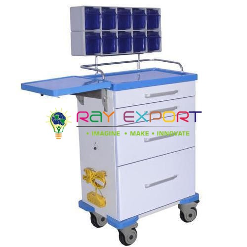 Made of mellow steel epoxy covered wrap up. Measure: 650 × 420 × 1020 mm. 8 drawers for keeping solutions merchandise. One Sliding rack. Outfitted with one waste receptacle, Douch Can (S.S) and oxygen holder. ABS Push handle. 4 swivel castor,all with brakes. Furnished with bolt key..