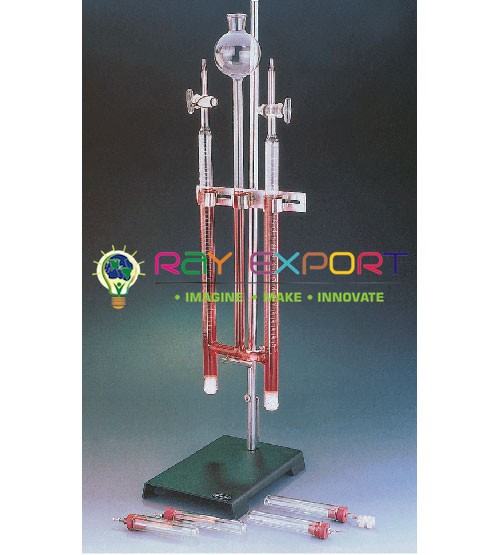 Hoffmans Voltameter to demonstrate that H2O consists of two volumes of Hydrogen and one volume of Oxygen with 50ml graduated limbs and removable carbon electrodes.