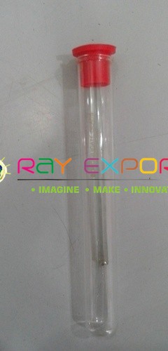 Platinum wire or foil fused into glass rod with internal lead, with rubber stopper and glass protection tube.