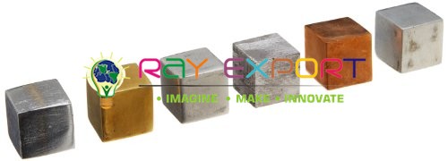 These metal cubes are intended for specific gravity measurements. Set of six different metals. They consist of one piece each of aluminum, copper, zinc, iron and lead cubes. Custom made sizes and materials also available including nonmetal materials like wood, plastic, etc Also available with a hook.