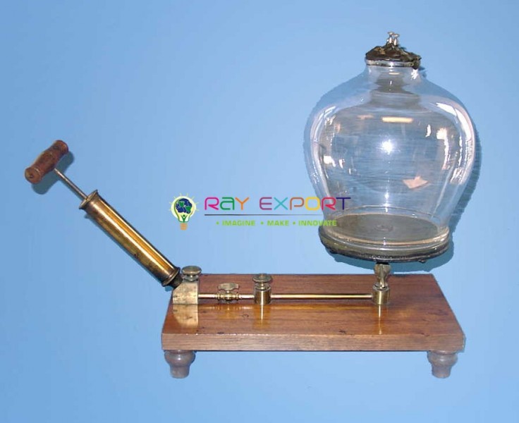 This air pump is suitable for a number of classroom demonstrations, single barrel made from steel pipe fitted on a wooden base.The aluminum plate is provided with a stopcock air inlet screw and a connection for rubber pressure tubing.
