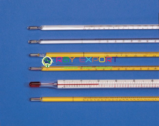 A thermometer is a device that measures temperature . A thermometer has two important features: (1) a temperature sensor in which some change occurs with a change in temperature, and (2) some means of converting this change into a numerical value. Ray Export are leading in the Thermometer, Thermometer Manufacturer, Thermometer Suppliers, Thermometer India, Thermometer Exporter, Educational Lab Equipment, Physics Lab Instruments, Physics Equipment.