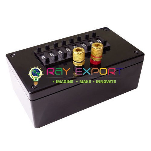 Obstruction Box, Plug Type is of predominant quality having substantial metal squares are bound to bakelite plate by methods for nuts and screws anchoring inflexible obsession and dispensing with any shot of contact mistake creping because of slackening of fittings and drags which are sliced to fine decrease and are exchangeable. Bind Joints are fixed after adjustment. All Resistors are aligned on imported Testing Bridge Accuracy ± 0.1%.