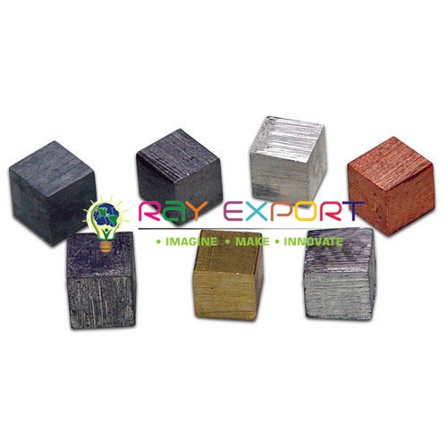 Metal Cubes – an arrangement of metal 3D shapes including copper, metal, aluminum, mellow steel, hardened steel and bronze solid shapes.