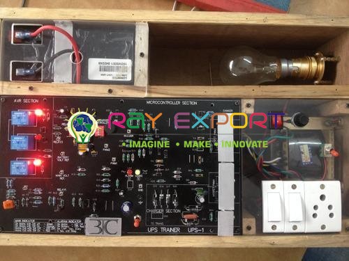 Equipment for Education, Engineering and Vocational Training - UPS Trainer & UPS Training Kit - The UPS trainer is a very versatile training system,has been designed to explain a very interesting and frequently used switching based power supply - The UPS (Uninterrupted Power Supply). The product is designed keeping in mind that a student can understand each block of UPS in a very easy way. Various test points have been provided so that one can check inputs and outputs of each block contained. Being different from a conventional block diagram internal structure of blocks is also shown. AVR (Automatic Voltage Regulator) is presented in such a way that a student can readily understand its functioning and pin configuration. Since UPS is different from an inverter because its switching changeover time is less than 3 mS which is very less so a computer system doesn't get reboot. In depth explanation of PWM switching technology, which is one of the most important feature of UPS A Low cost product demonstrating all basic concepts of UPS Various test points are provided so that one can easily measures the voltages of different sections Designed considering all safety standards Provided with a detailed Operating manual Technical Specifications Input : 190 to 260 V 10%, 50 Hz Output : 230 V Transformer specifications Input : 12 - 0 - 12 V Outputs : 0, 190, 220, 240, 260 V 18 - 0 for battery charging Experiments than can be performed Study of PWM Technology To understand the overall functioning of UPS Trainer Study of AVR transformer section of UPS To study the UPS circuit in load condition To identify different faults and to study the systematic procedure of their troubleshooting in UPS circuit.