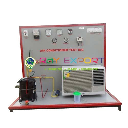 Equipment for Education, Engineering and Vocational Training - Refrigeration & Air Conditioning Lab Trainer - Refrigeration Trainer allows students & industry professionals to learn the fundamentals of Simple Vapour Compression Refrigeration System. The design of this Refrigeration Training System is to allow the user to study this Technology in great detail. The training system introduces various sub-systems with real components. The training system brings a comprehensive view of the entire Refrigeration system. Actual component study and their interconnection, functions, operation, diagnosis, etc. are a part of the scope of training. The construction of the trainer is on a main platform unit mounted on a trolley. This helps the students to place the trainer at their desired position. However, the height of the trainer is as such, the students can comfortably observe the reading while performing the experiments. The unit is opened, in order to provide an open exposure to the students for understanding the importance of each component in the process cycle. In this trainer, students can learn how to calculate the Coefficient of Performance (C.O.P.) of a compressor, based on which he / she can know the capacity of a compressor. Apart from this, students are also able to know the power consumed by the compressor.The front panel also includes Toggle Switches, LCD, Pressure, Dials, Voltmeter and Ammeter. Refrigerant (R134) used is non-poisonous, harmless to body and eco-friendly Compact and Self-contained Mounted on trolley for mobility Digital LCD for Temperature Multi point temperature measurement Process Diagram on front panel Easy component identification Technical Specifications Condenser : 10 11 2 Turns Motor : 230 VAC – 50 Hz, 0.40 Amps, 9 watt and 1360 RPM Evaporator & Tank : Capacity : 20 litres Compressor : 1/3 HP, 925 BTU, 150 watt, R134a (Refrigerant), 220 VAC – 50 Hz, Drier :1/4- Threaded (male) Pressure Gauge (P1, High) : 0 – 300 PSIG & 0 – 21 kg / cm2 Pressure Gauge (P2, Low) : -30 to 150 PSIG Ammeter : 0 to 5 Amps AC Voltmeter : 0 to 300 VAC Pump : Submersible, 220 VAC, 800 L/H Heater : 220 VAC, 50 Hz, 500 watt Rotameter : 0 to 30 LPM, Acrylic body LCD : 16´ 2 Temperature Range : 0° -100°C.
