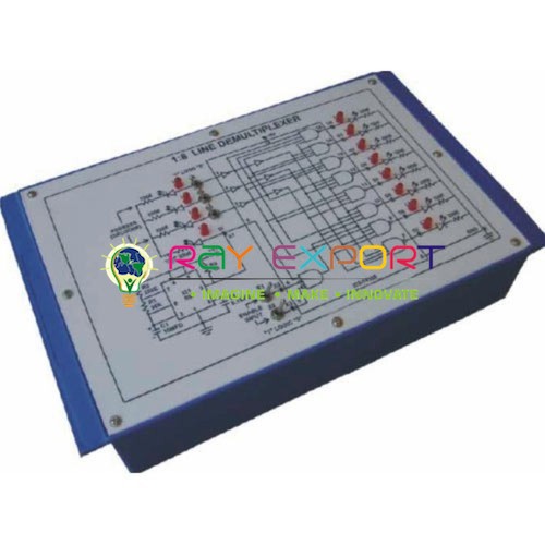 Computer Logic Training Board has been designed specifically for the study of 1:8 Line Demultiplexer. This Training Board gives a better understanding of the phenomena of demultiplexing with one input demultiplexed to eight outputs using three control inputs (Address).