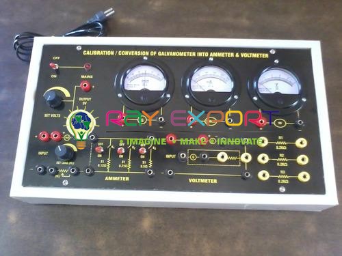 Features: Instrument comprises of DC Regulated power supply of 0-5V. Three round moving coil meters (one voltmeter, one milliammeter & one galvanometer). Three shunts, three Resistances are mounted on front panel.