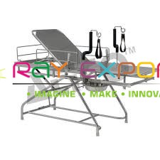 Made in 3 segments, movable back rest and leg segment with lever system to fluctuating positions, equipped for tilting for obstetric and gynecological utilize. Legs mounted on elastic tips. Measure : Table 1800L x 600W x 800H mm. Tubes : 30 x 1.5 mm. Backings for leg holders with strong component to settle leg holders at required tallness and width. Bolster ring at closeness of seat segment to help round bowl. Provided with 2 leg holders with canvas lashes customizable in stature and width. Epoxy covered tubular steel outline. Tubes : 30 x 1.5 mm. Sleeping pad cushion : thickness : 21 - 25 kg/m³. Conveying limit : 150-180 kg. Sleeping cushion : 30H mm. Knockdown development. Provided with 4 liter S.S. Bowl. Note : Available with knee crutchers on ask..