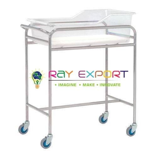 Hospital Baby Bassinet Lab Equipment Manufacturer, Supplier and Exporter in IndiaCatalogue No : HF-0104We offer super quality BABY BASSINET according to the given Tech Spec: M.S Tubing outline. Acrylic bushel with sleeping pad. Trolley mounted on four swivel castors with 02 brakes. Complete in Epoxy Powder covered. Stand Size : 1200 x 880 x 450 mm