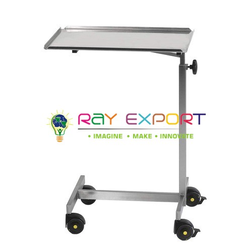 Mayos Trolley Lab Equipment Manufacturer, Supplier and Exporter in IndiaCatalogue No : HF-0172Plate size L 555mm x W 430mm x HT.adjustable from 860mm to 1300 mm Frame Stainless steel rectangular and square tubes Trolley Mounted on 50 mm dia. wheels Available in full treated steel/Powder coated frame with Stainless steel plate.