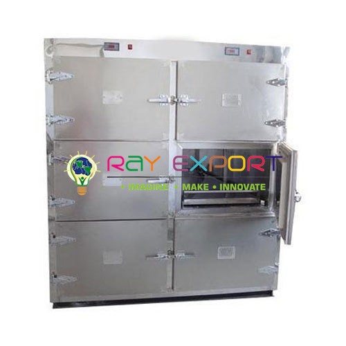 Mortuary Chamber - From 1 body to 10 bodies or more, we design and develop mortuary cabinets as per matched requirements of our customers. Mortuary chambers and freezers, mortuary cabinets are highly hygienic and provide easy and environment free operation. These are also customized as per individual requirements. Mortuary Chambers and Cabinets - High quality mortuary cooler units, Mortuary Chamber, Cabinet models are available in single or multi door format. Mortuary Cold Cabinets or Mortuary Refrigerators are highly functional and offer an experience based on innovative solutions, while also setting standards in quality and safety. Morgue Fridge / Mortuary Refrigerator with 2, 4, 6, 8, 10, 12 bodies to 16 bodies or as required. Our existing morgue freezer models can also be customized on demand. Mortuary Chamber Features: - Cabinet or walk-in type mortuary cold room - Modular construction with galvanized steel - Wall, roof or remote cooling systems available - R134a or R404 refrigerants - Fully automatic systems w/ auto defrost - High Density Polyurethane Insulation - Available in single or multi door format - Molded lockable door catch with internal release - Manufactured to Quality Assurance Standard ISO 9001 - Flexible to shift anywhere - Energy Efficient Units - Efficient Internal lighting - Vapor proof incandescent lamp - Removable Racks - Easy to maintain and clean - Extended choice of control options - ISO and CE marked - Corrosion free exterior - Digital temperature indication - Micro processor based temperature control - Audio visual alarm for high and low temperature We provide re-assembled and custom built mortuary cabinets and walk-in mortuary chambers matching to required specifications. All these mortuary cabinet units deliver reliable performance and hygienic solution for dead body storage. Each mortuary cabinet model equipped with temperature control system with a high contrast digital display for accurate temperature control and recording. Temperature Range and Control Mortuary cabinets are available with temperature range of 2°C to 8°C and -10°C to -20°C. However mortuary cabinet can also be made with specific temperature range as required by the customer. For accurate measurement and display of temperature a LED or LCD display is used. These units are equipped with microprocessor based digital control panel which is operated with push buttons. For security and safe working high and low temperature alarm system is used. Refrigeration System Mortuary cabinets are equipped with full functional cold storage facility. Refrigeration system is energy efficient, environment friendly, completely airtight and can be roof top or wall mounted. This refrigeration system can also be installed as remote equipment where noise or heat can be a nuisance. The evaporator is equipped with automatic electric defrosting. Featuring noise less compressor and air cooled condenser (water cooled condenser on demand) this cooling system provides full value of money. Construction Mortuary chambers are of double walled construction and made of 304 grades corrosion resistant stainless steel. For insulation high pressure-injected polyurethane is used for minimizing thermal loss and meeting the particular requirements of refrigeration in mortuaries. Doors Doors are made of painted stainless steel and fitted with external lock for security. These doors are situated in front and allows easy loading of trolleys. These doors feature lining in odorless rubber gasket and anti-condensation resistors. Internal Lighting Lighting system comes with waterproof fluorescent ceiling lamps which are fitted with a switch on the control panel. Accessories Mortuary Fridge / Mortuary Cold Cabinets are supplied with a number of optional accessories to provide easy accessibility of machines. These accessories are: Caters, Stabilizer, Loading Trolley, Instrument Trolley, Data Logger and Temperature Chart Recorder etc. If you need Authorization Certificate it will also be provided on request. Models - Number of Bodies: 1 Body, 2 Bodies, 3 Bodies, 4 Bodies, 6 Bodies Mortuary Chamber Specifications: Temperature Range: 2°C to 8°C / -10°C to -20°C Temperature Control: Digital Micro-processor Temperature Display: LED / LCD Display Construction: G.I Sheet / M.S / 304 Stainless Steel Insulation: High Grade Poly Uretherane Doors: Made of Steel Sheets w/ Magnetic Gasket & External Lock Trolleys: Made of Steel and sliding on telescopic rails Compressor: ISI Marked & CFC Free Defrosting Type: Automatic Evaporator: Internal evaporator system Forced draught Internal drainage: Yes Integral temp gauge: Yes Refrigeration System: Air cooled Hermetically sealed Air Circulation: Forced Air Circulation Alarm: High / Low alarm system Internal Lighting: Waterproof fluorescent ceiling lamps Locking System: Standard Key Locks Power Supply : 220 Volts / 50 Hz Essentials: User & Technical Manual, Optional Accessories: Caters, Stabilizer, Loading Trolley, Instrument Trolley, Data Logger,Temperature Chart Recorder, Authorization Certificate High quality Mortuary Equipment for post mortem stations, hospitals and Tender Supplies. Mortuary cabinet, mortuary chamber systems, walk in mortuary cabinets manufacturers, exporters and suppliers from India and engaged in designing and producing highly reliable mortuary cold cabinets for various supplies exported to Asian, African and Middle East Countries at economical price and excellent warranty. Mortuary cabinets with reliability, we cater needs of hospitals, health institutions, post mortem stations, universities and medical centers, army and police units & Tender Supply. All mortuary chambers and cabinets are custom built and made to order to match the specific requirements of the customer. We would like you to contact us with your specific size, number of bodies and accessories you need with your mortuary cabinet. To enable us contacting you with suitable mortuary cabinet price, cost, quotation and