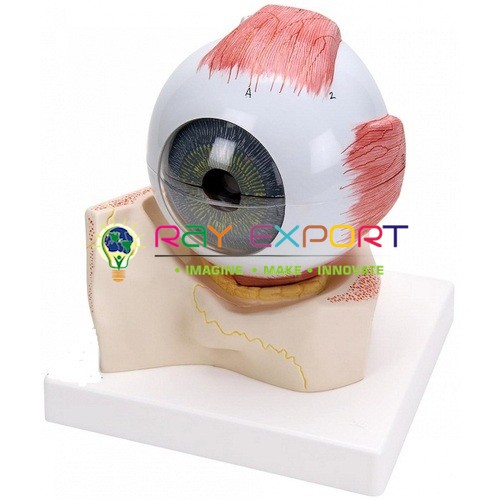 This model is 3 times developed and separated into six sections. The two parts of sclera with cornea, eye muscle connections, choroid with iris, retina, focal point and vitreous funniness can be se...