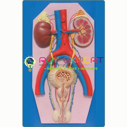 Demonstrating urinary bladder, kidneys with ureter, adrenal organs, bladder with prostate and real veins. Kidney and bladder prostate are removable. Mounted on base with numbered scratch card. ...