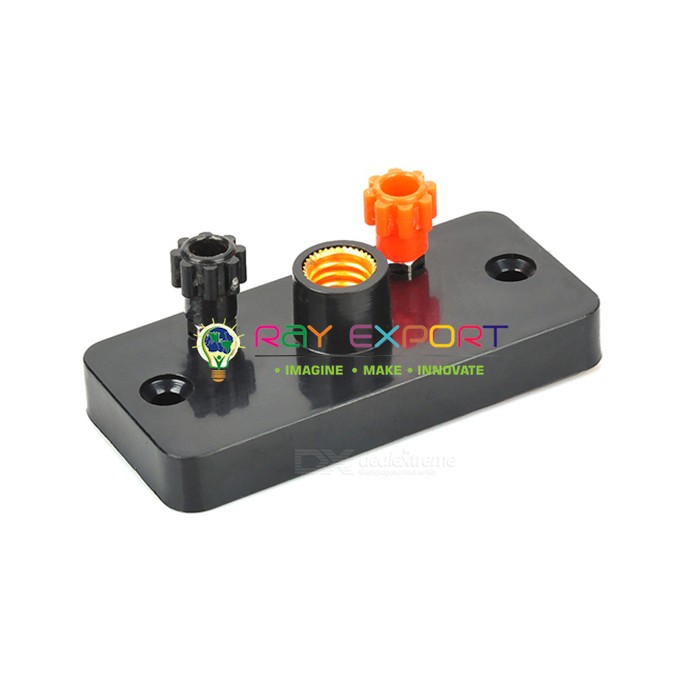 Double contact type lamp holder made of brass placed on insulated plastic base with 4mm socket terminals