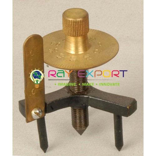It comprises of a little metal edge, bolstered by three legs settled at the sides of a symmetrical triangle. A screw of fine pitch goes through the focal point of the metal casing. The screw frames the fourth leg. The fundamental scale (or pitch scale) is set apart in a metal strip settled at right points to the casing. Spherometer scale is set apart in millimeters with zero stamp at the inside (10-0-10 mm) roundabout scale is settled to the screw head. It conveys a round scale separated in 100 a balance of (now and again it is partitioned into 50 equivalent amounts of). The edge of strip is utilized additionally as a source of perspective line for taking the roundabout scale perusing. The circle and scales are metal lacquered and legs are made of steel dark painted.