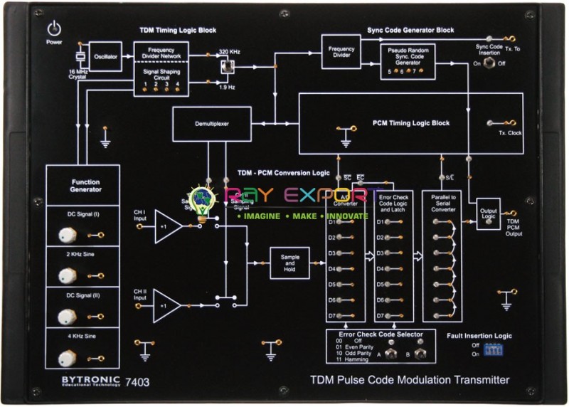 Ray Export is a leading manufacturer and supplier of TDM Pulse Code Modulation Transmitter Trainer Experiment Apparatus in India,